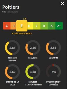 Nous avons également pris en compte l’ensemble des commentaires de l’enquête nationale “Parlons Vélo” relative à la situation de Poitiers. Les avis étaient déjà très négatifs en 2017 : ils le sont encore plus en 2019 et traduisent une dégradation générale de la situation des cyclistes au niveau des aménagements et de l’entretien des bandes et pistes cyclables.